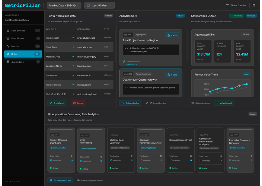 Computools developed MetricPillar, a centralized analytics framework designed to bring structure, consistency, and reuse to construction market data across all analytical applications.
