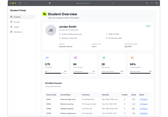 Computools develops custom SIS platforms that centralize student profiles, enrollment, attendance, schedules, grades, transcripts, and institutional records in one secure system. Our SIS solutions provide clean data governance, role-based access, and API-first interoperability, with AI integration enabling intelligent analytics, predictive insights, and workflow automation for educational organizations that need long-term scalability.