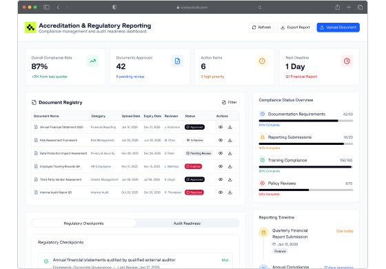 We develop systems that automate compliance tracking, evidence collection, and reporting for accreditation bodies and regulators.