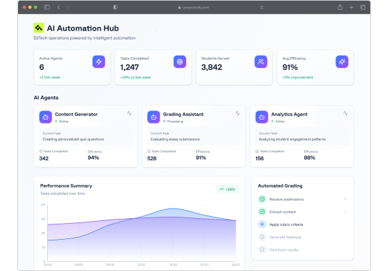 Computools builds custom AI automation tools and task-oriented AI agents embedded in academic and administrative systems to eliminate manual workload and operational bottlenecks. Using LLMs and rule-based logic, these tools automate high-volume workflows across student services while maintaining governance and policy alignment.