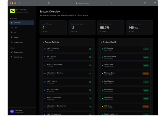 Education organizations rely on us to build systems that carry real operational responsibility, secure, scalable platforms engineered for high concurrency, strict governance, and nonstop institutional workflows.