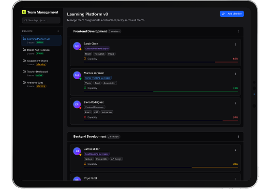 With our dedicated software development team, you get a long-term delivery unit aligned to your roadmap: software engineers, architects, project managers, UI/UX designers, QA, and product roles experienced in education platforms and compliance-heavy systems. The team works as an extension of your organization, accelerating delivery while maintaining platform stability through growth, integrations, and continuous feature releases.