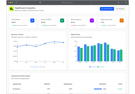 Our engineers deliver custom AI-driven analytics platforms that turn complex clinical and operational data into meaningful intelligence. Whether enabling predictive diagnostics or delivering population-health dashboards, these platforms give healthcare teams the clarity they need to act with confidence.