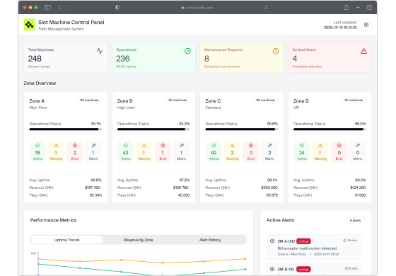 Our solutions integrate directly with slot machines, table game systems, controllers, and meters, enabling unified monitoring, performance analytics, and configuration management.
