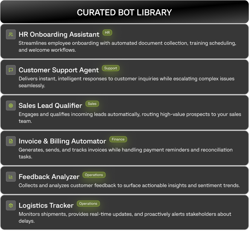 A refined collection of white-label AI bots designed to automate core workflows, elevate customer experiences, and enhance operational efficiency across industries.