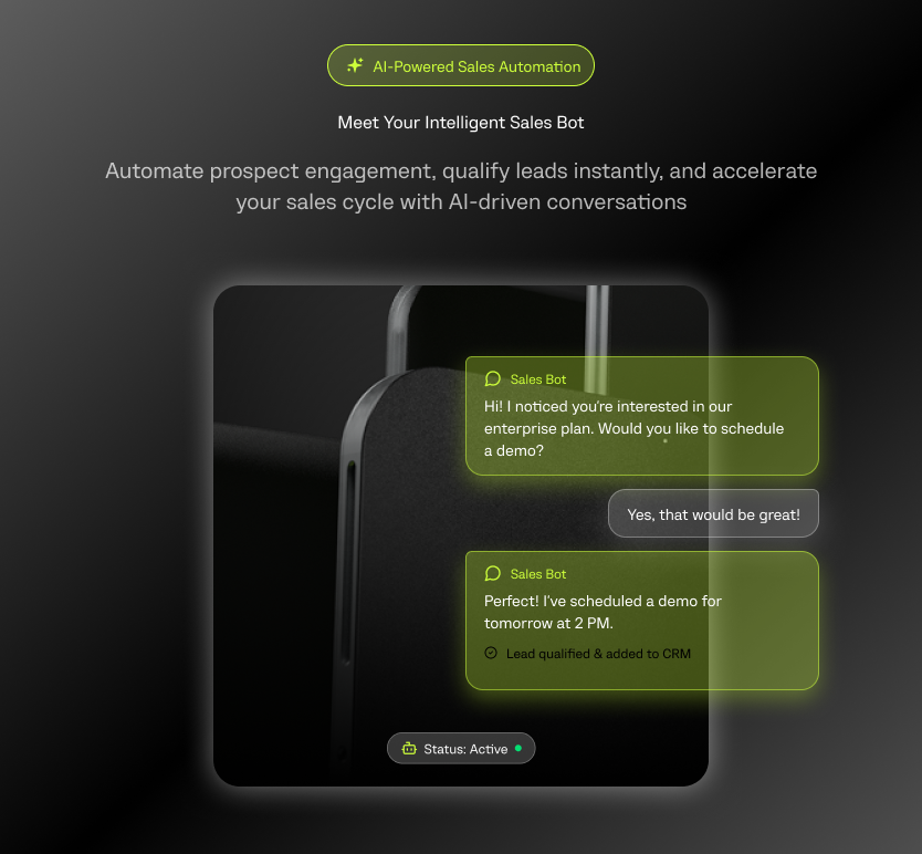 An intelligent assistant that autonomously engages prospects, qualifies leads, and accelerates the sales cycle. Seamlessly integrates with websites, CRMs, and leading messaging platforms to maximize conversion potential.